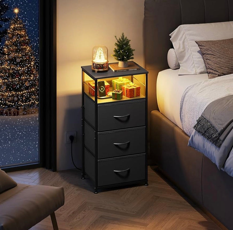 Modern 3-Drawer Nightstand with LED Light & Charging Station