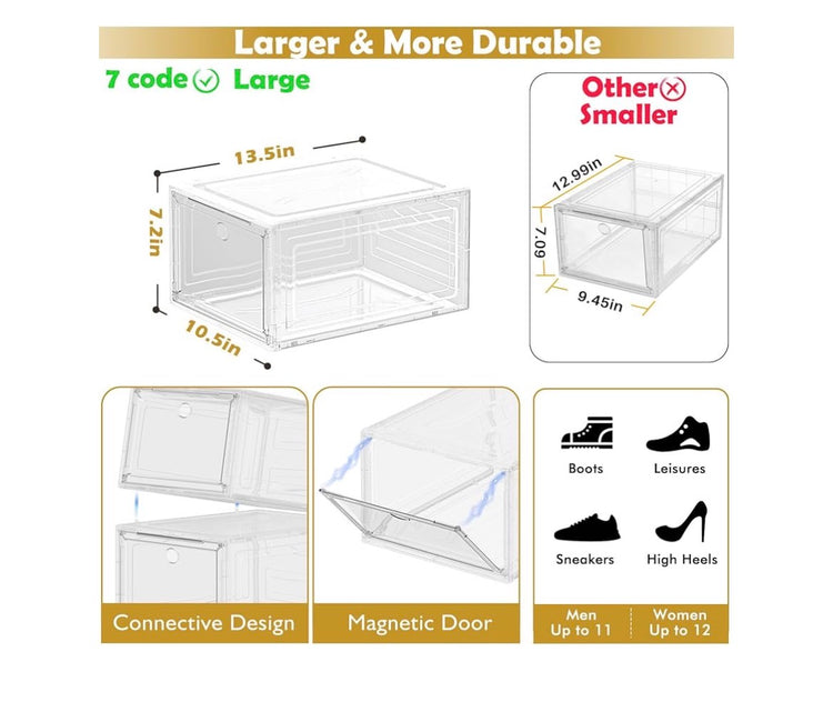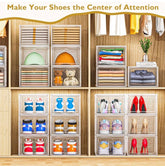 The magnetic drop-front door makes accessing your shoes effortless. Just open the door and grab what you need without unstacking other boxes. You’ll love how easy it is to keep everything organized!